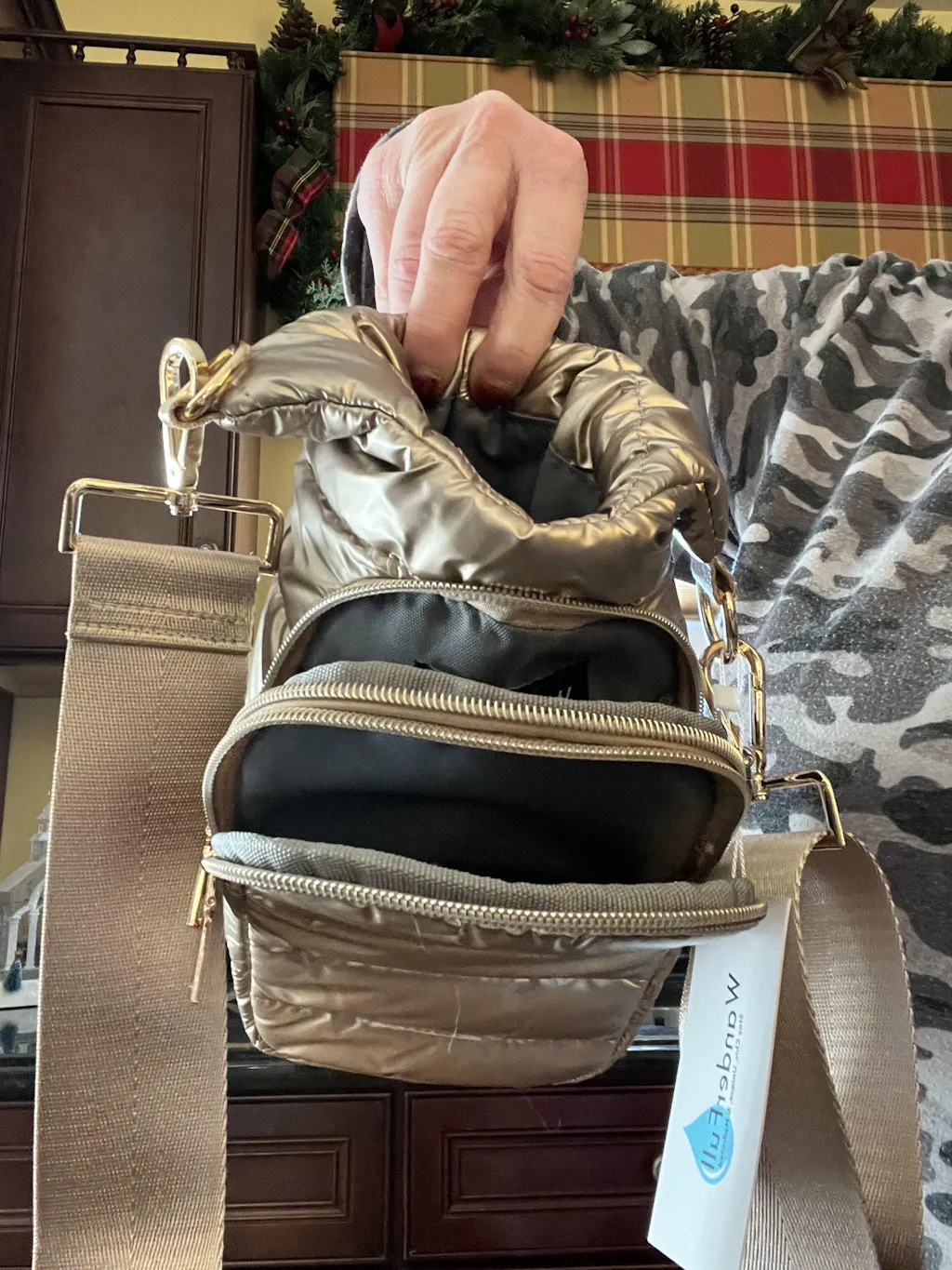 - Hardware: Gold toned hardware