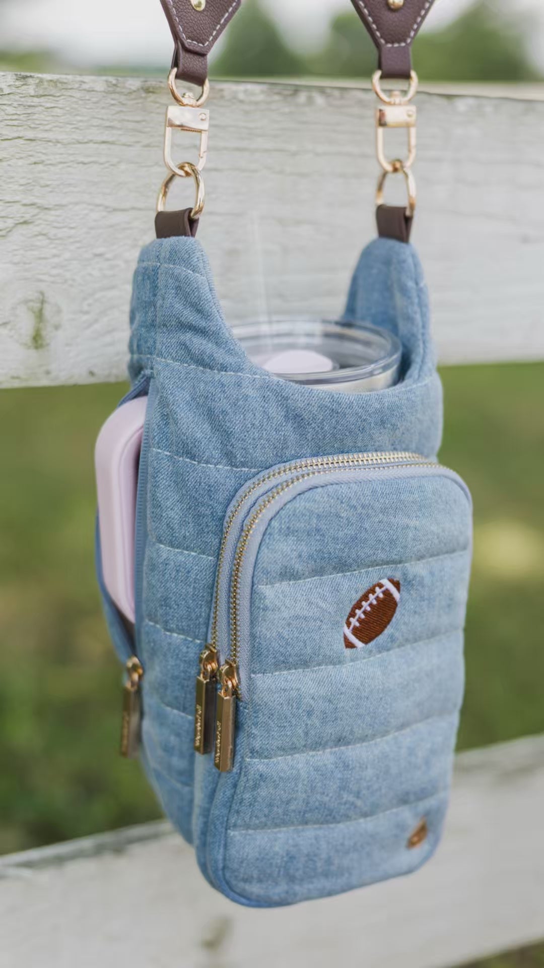HydroBag® HANDLE™- Football Embroidery on Denim with Gold Hardware